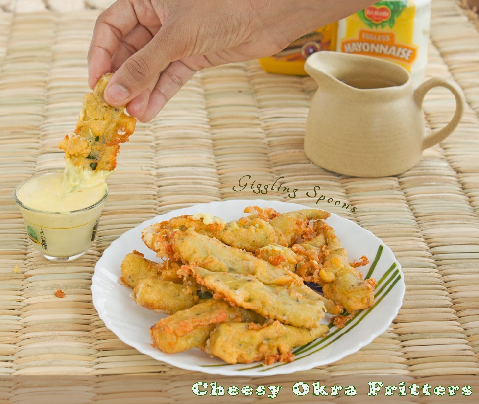 Cheesy Okra Fritters from Priyanka @Giggling Spoons.
