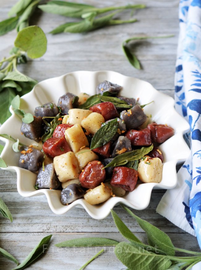 I bought several bags of red, white, and blue potatoes that were just begging to be turned into gnocchi. So I obliged.