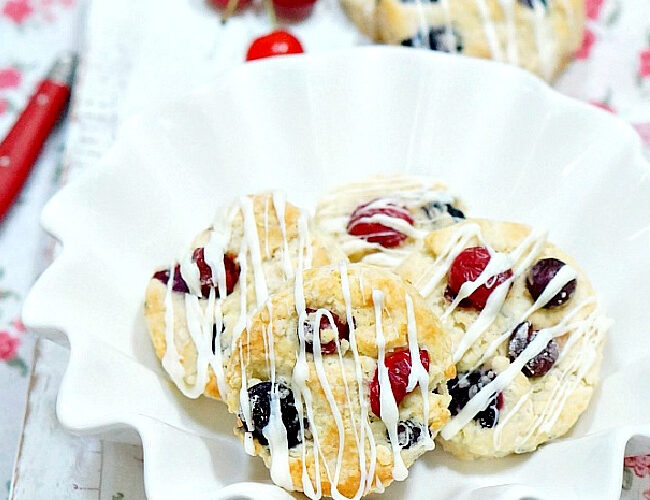 Cherry season is short! Better get your fresh cherries now to make these red, white, and blue scones, perfect for breakfast on Independence Day! Sometime last week, I dragged the husband to Mood's Farm. For these... This is round two, by the way. Round one was for the sweet cherries. These are sour cherries. So hard to find in regular stores. So hard to find in irregular stores. So hard to find, period. Never seen them fresh in any stores. Maybe canned, but not fresh. Only way to ... continue reading...