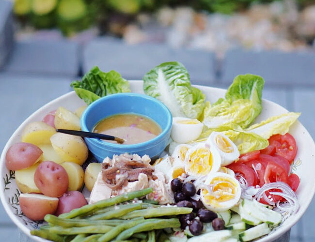 My big salad platter is getting a lot of use these days, in and outdoors. This was last night's dinner. When the weather is too hot... or you're still recovering from an illness... and the idea of cooking is too much, a salad platter is the only way to go. All you have to do is slice some fresh vegetables, boil a few potatoes and eggs, and open a jar of olives... and right there, you have dinner ready! I can practically eat this way for days. But for the sake of the family, I try to vary ... continue reading...